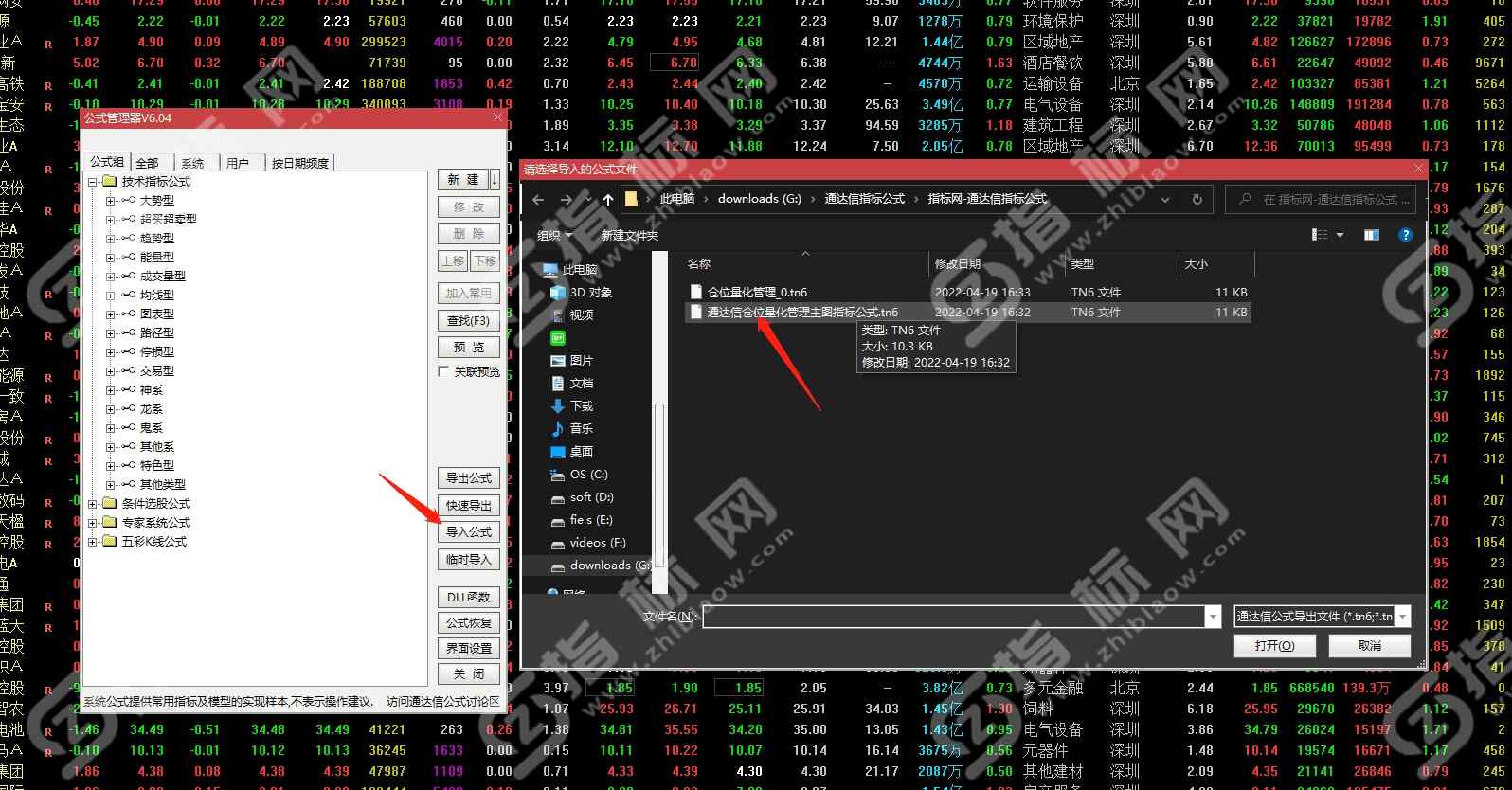 步骤六:点击【导入公式】按钮,在弹出的窗口中选择需要导入的通达信指标公式或选股公式,然后点击【打开】按钮;
