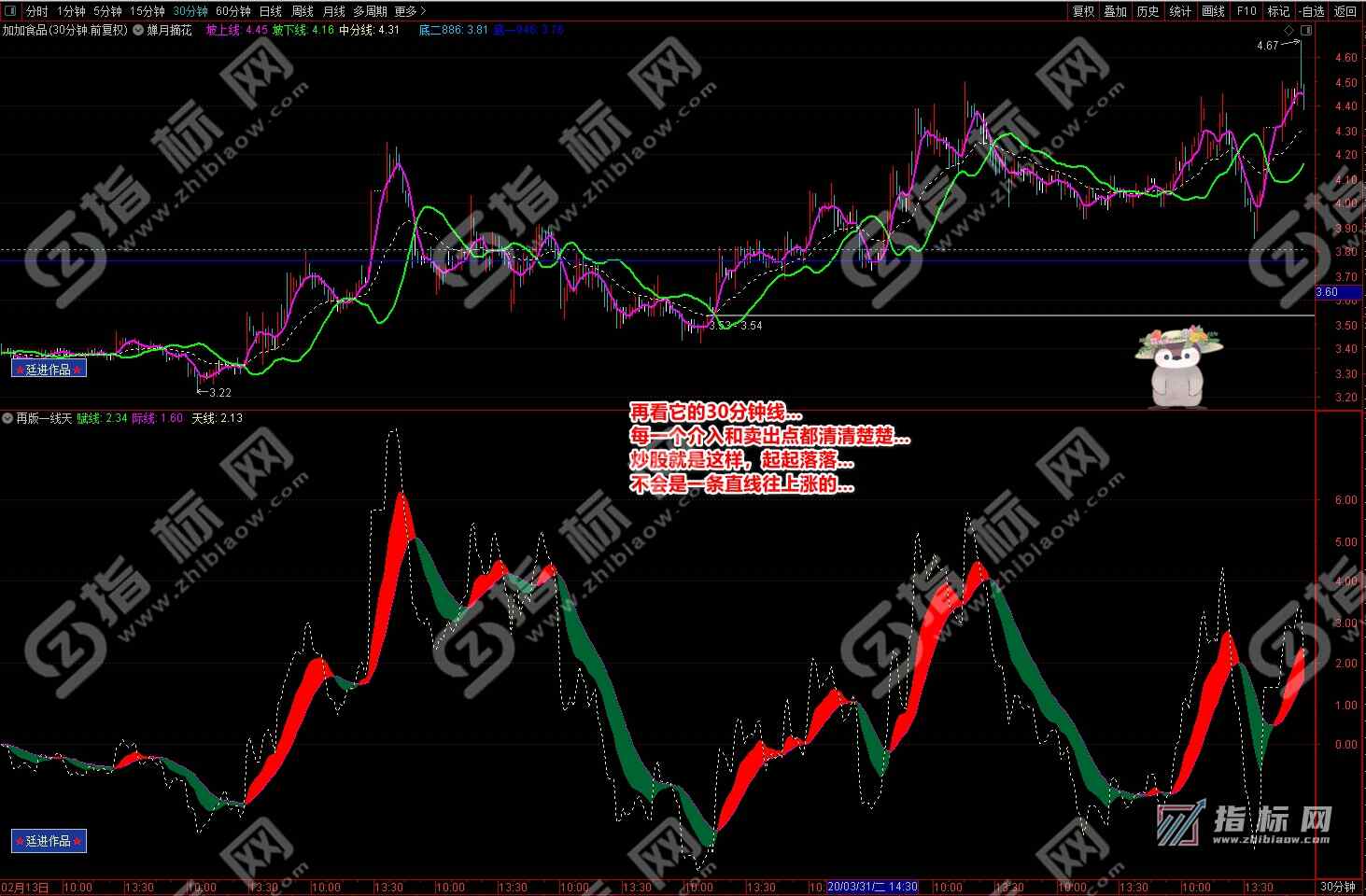 5.本套指标适用于5分钟、30分钟、60分种、周线、月线图,实盘中可在用5分种或30分钟图寻找介入机会。