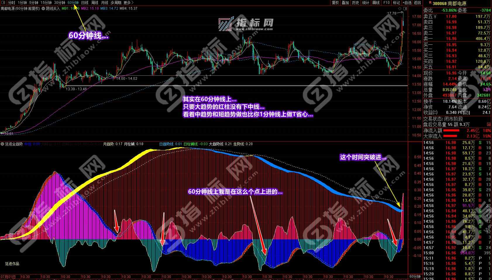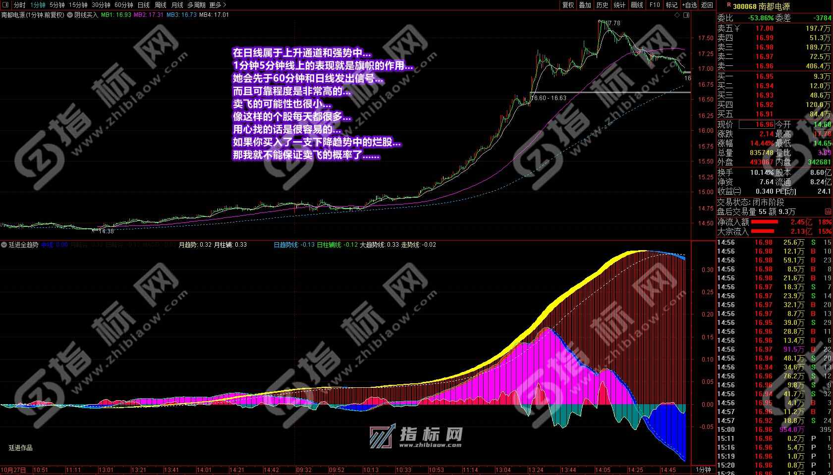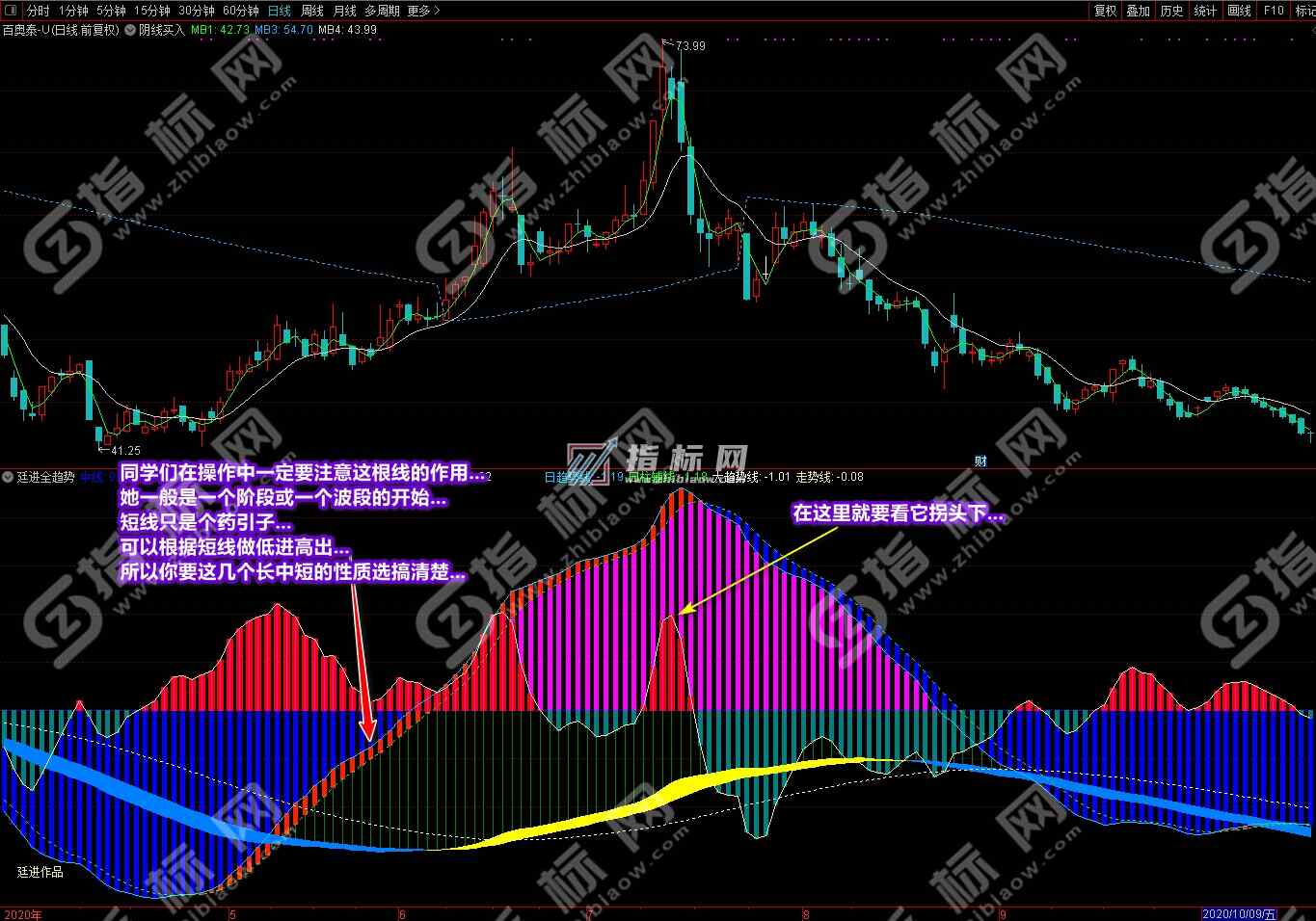 《廷进全趋势》指标最初设计是在2015年下半年,当时为了总结和验证股市中的经验术语“趋势为王”而写出了初稿,后经反复修改,一直自己按当初的简单的二根线操作,没想到效果相当好,基本不去看基本面、业绩或财务数据,操作更加轻松。因是上班族为了只在长线上获利而创作了此指标,后经过一年多的试用调校和校正,可以说亏了不割肉,赢利不逃跑,只看趋势操作,基本上每一波操作没有亏损过。这也是庄家最怕的操作手段。当然,当初的操作确实没有现在的赢利大和多,因为当初不像现在可以把一支个股在上升途中的调整或洗盘看透,也没有像现在这样会低进高出,做到赢利最大化。