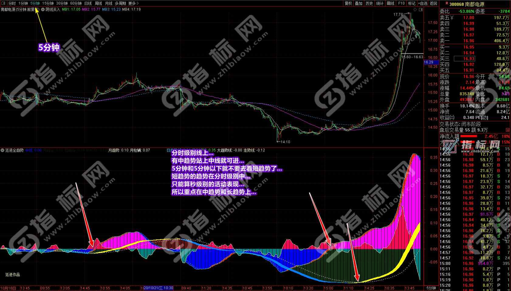 订阅了的同学可以看到A股大盘的牛市形成过程,通过此指标你会发现牛市离我们有多远,目前我们的大盘处在一个什么地步,再通过60分钟或5分钟线知道大盘明天涨还是跌,什么时候该清仓休息,什么时候该去收割,甚至通过1分钟线明确做T,比看分时图还要明快……