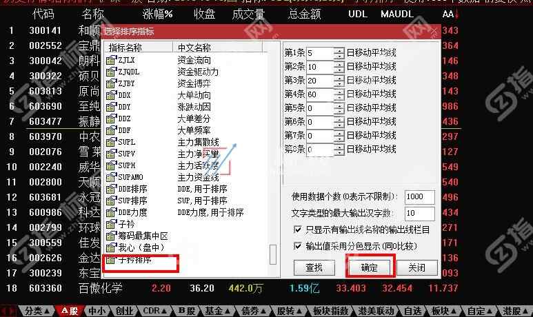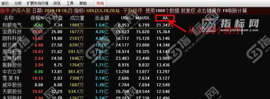 找到子矜排序指标,确定就可以了,然后选择AA排序,就会由强到弱进行排序