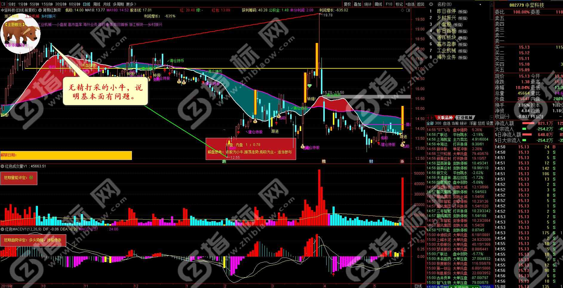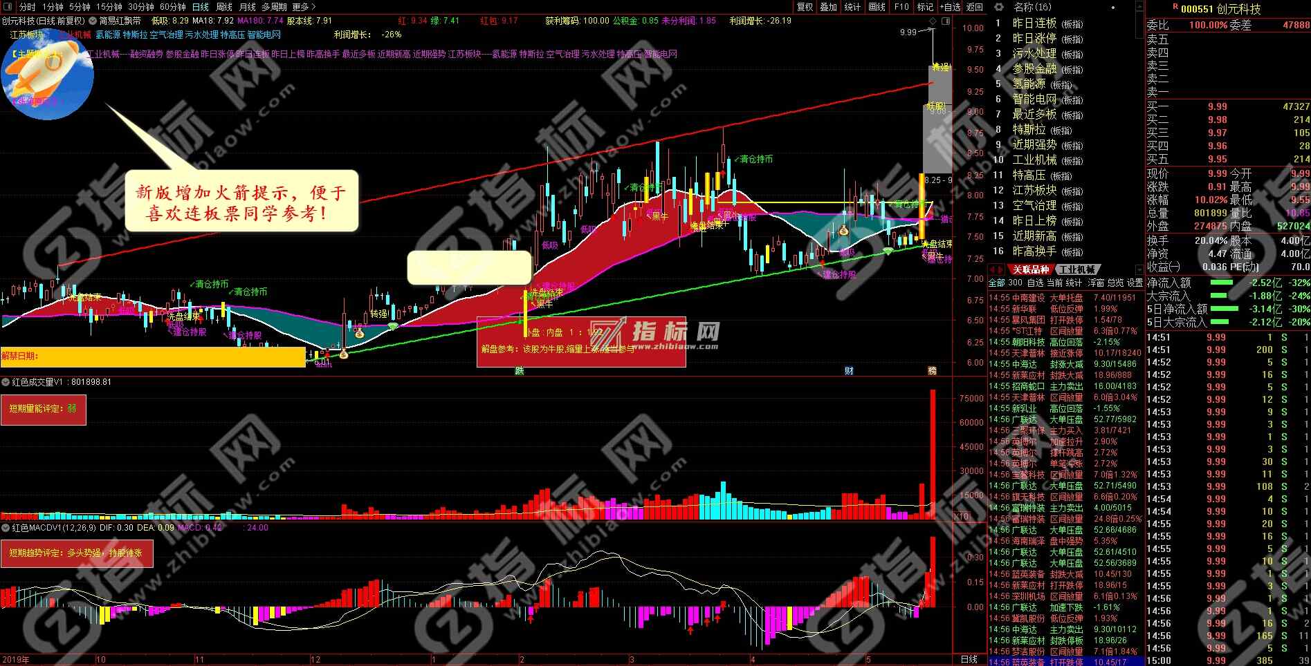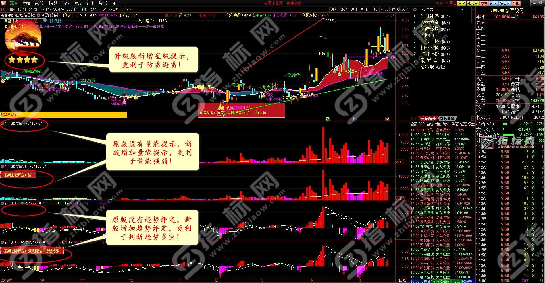 2、警示图片。在原来的牛、猴、熊三张图片的基础了增加了火箭、黑马和五星牛股、四星牛股等图片,使图片细分更科学,决策更直观。