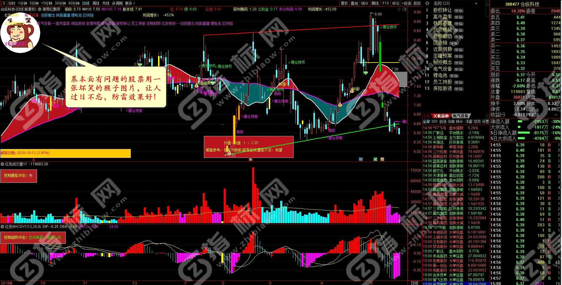 3、防雷扫雷。把个股的基本面融入到警示图片中,结合中国人的习惯爱好,让图片形象化和拟人化,警示作用非常明显,让人过目不忘记。