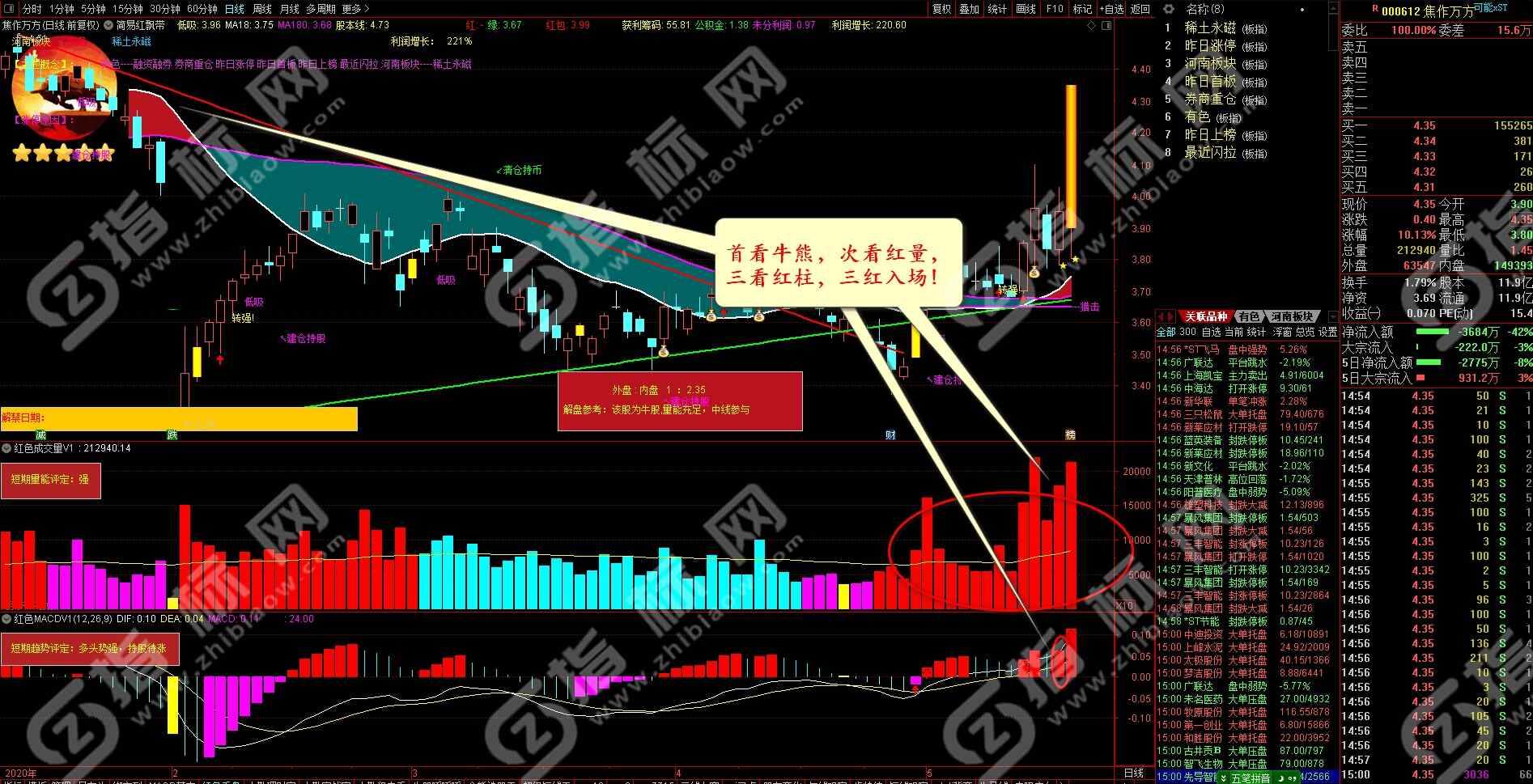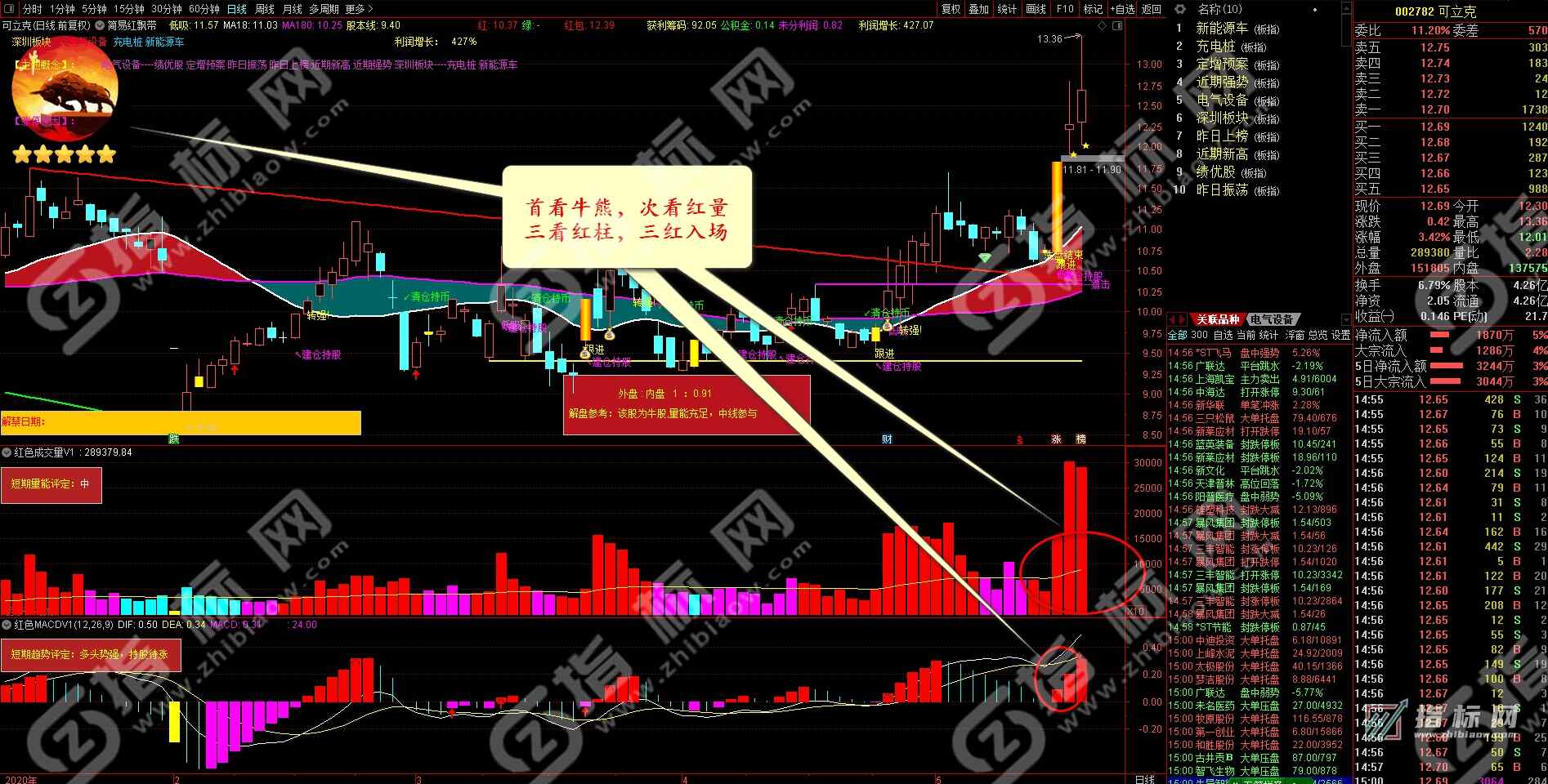 - 首看牛熊,次看红量,三看红柱,三红入场。实战中请结合自己的操盘系统和看盘经验综合判断准确率更高。