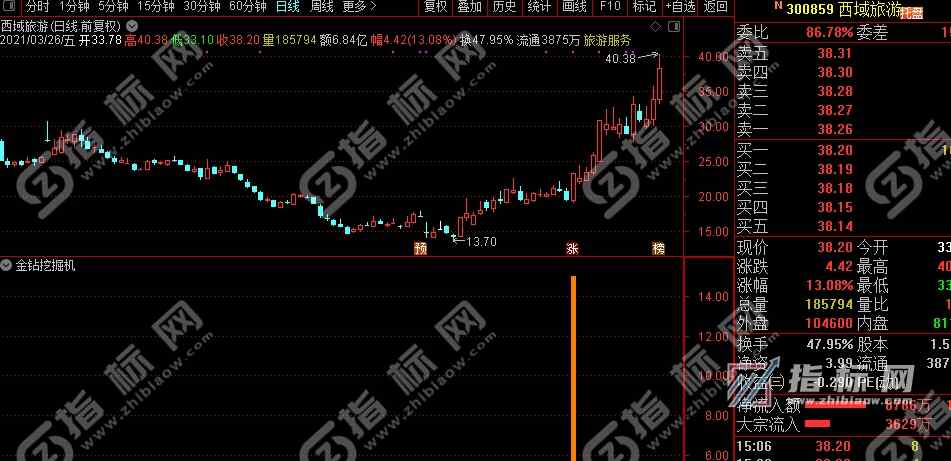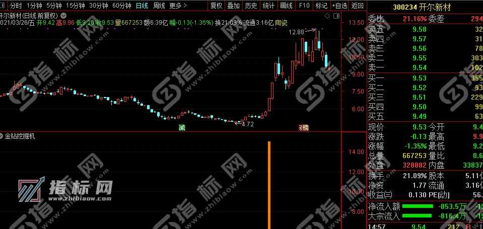 通达信《金钻挖掘机》副图及选股公式使用说明: