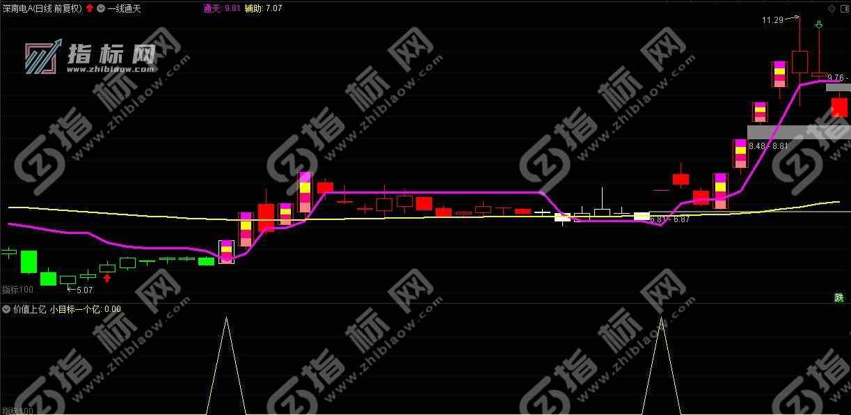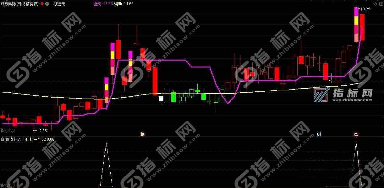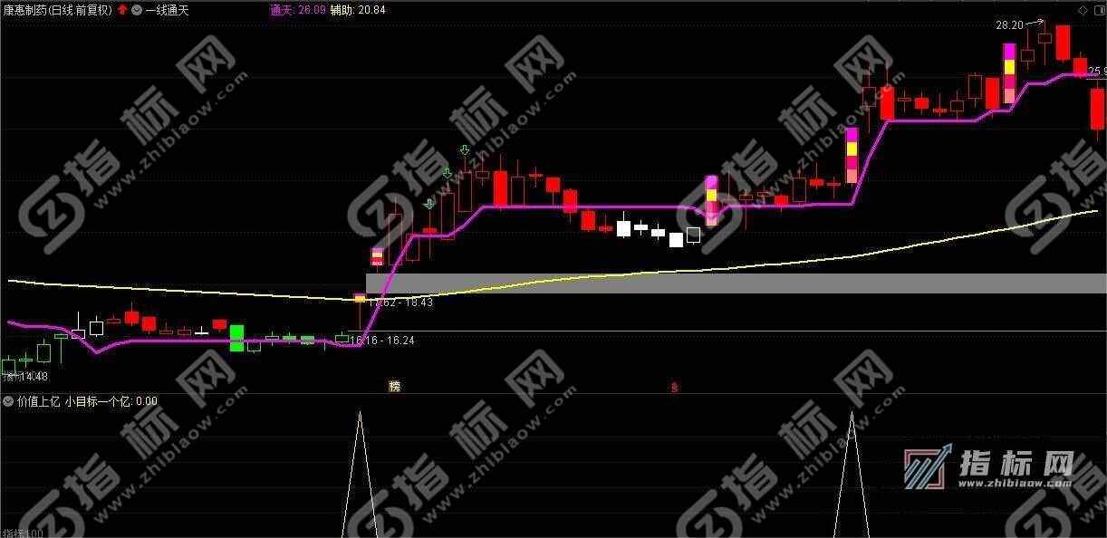 此组合指标通达小目标选股,价值上亿副图指标和一线通天主图指标适合中长线波段操作。