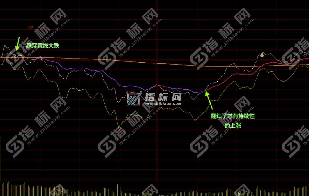 - 信号明确,趋势没有改变紫线不会翻红,不会翻红就不会有持续性的上涨;