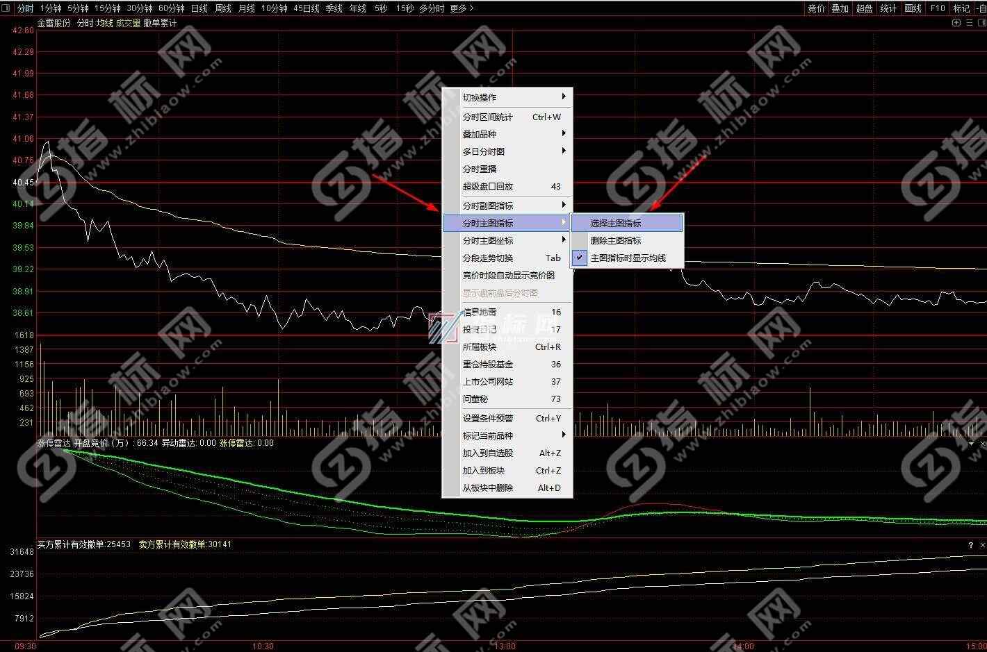 2.在弹出的菜单中选择需要的分时图指标,如下图: