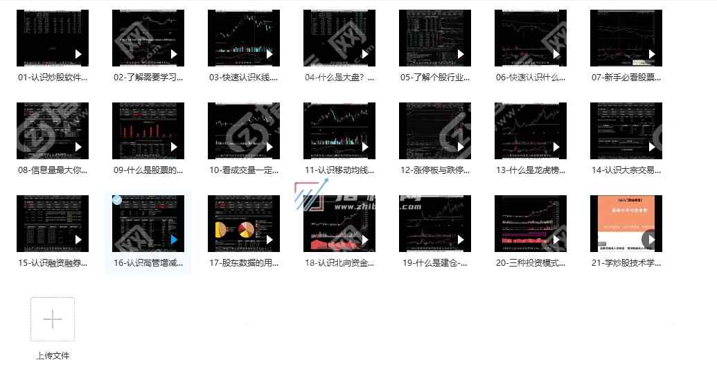 以下是指标网收集的零基础入门学习炒股视频教程共21节,课程包括炒股软件技术指标K线大盘指数个股行业概念盘口买卖交易细节、F10资料个股基础本面、成交量、均线涨停板跌停板、龙虎榜、大宗交易、融资融券、高管增减持、股东数据、北向资金、建仓、出货、洗盘、投资模式等,通过以上内容的学习,能够快速达了解炒股入门的基础知识和操作。