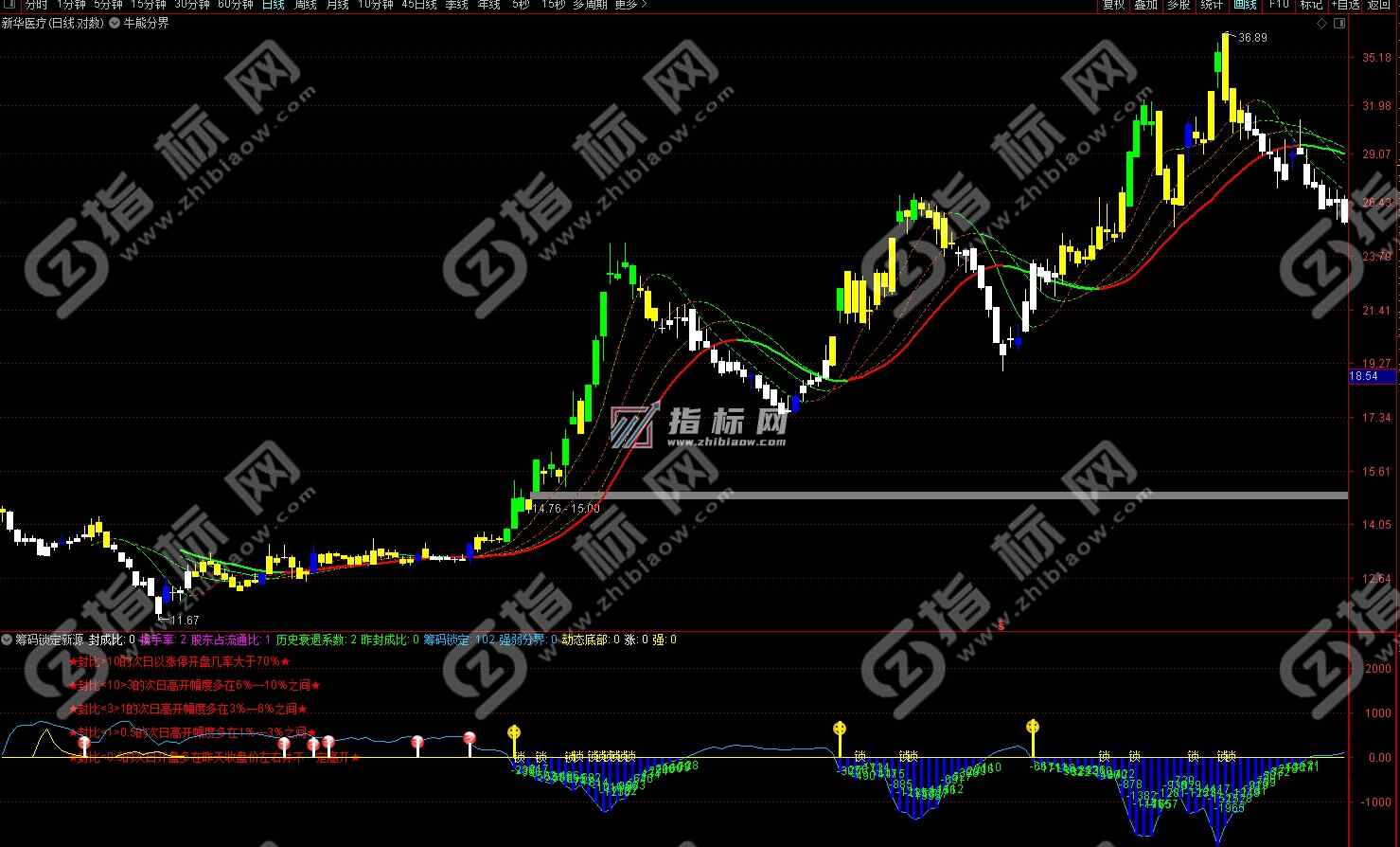 以下是通达信金钻筹码锁定新版副图指标公式截图,可配合牛熊分界主图指标公式相互验证,提高操作准确率。