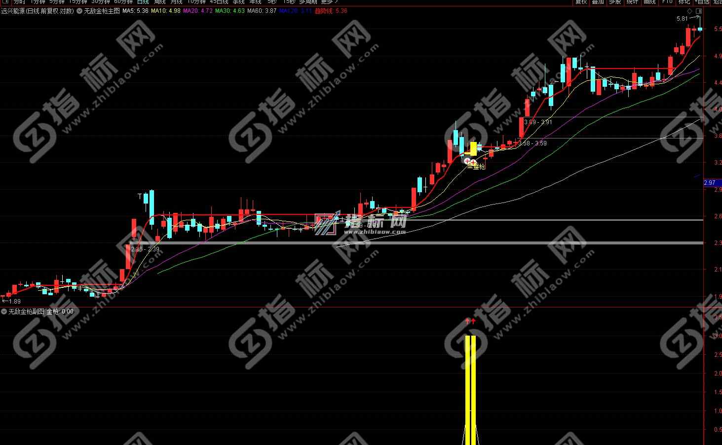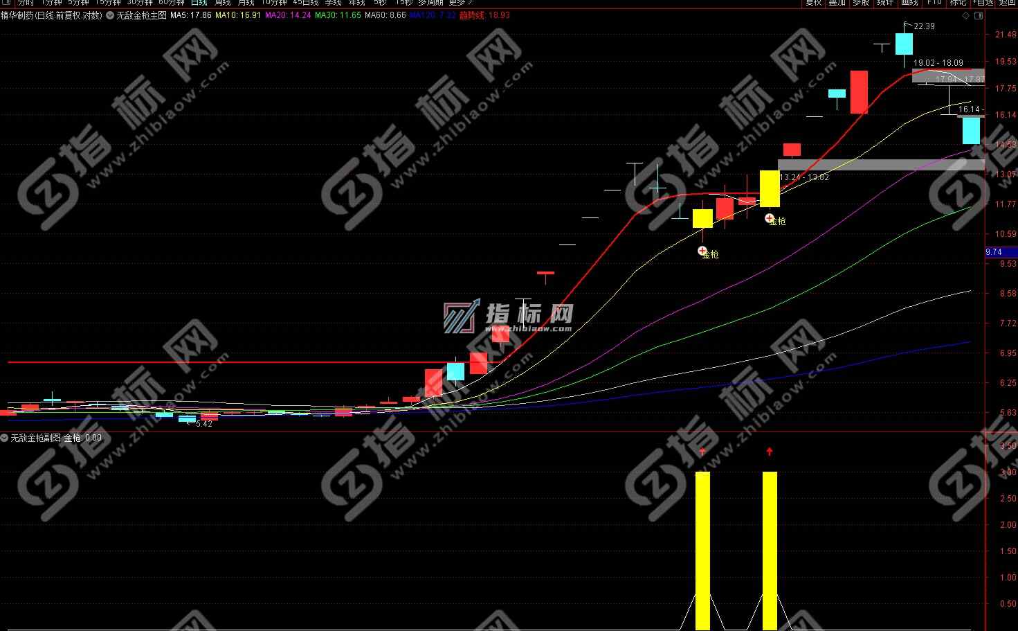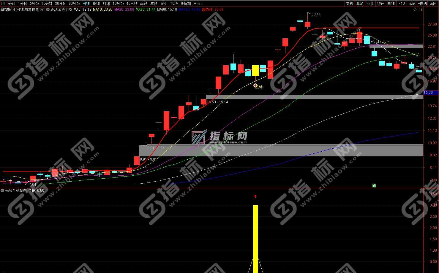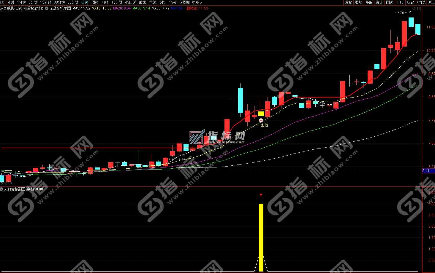 以下是通达信无敌金抢升级版主图+副图+选股预警指标公式截图和用法说明,无敌金枪指标属于涨停回马枪系列,关注强势回调个股短线买入的机会。使用中注意信号出现的位置。 个股涨停后的交易机会往往比“潜伏”更有效率,更能快速的赚取超额收益。无敌金枪指标无未来函数适合超短线和短线操作,同样也适合波段操作,做超短线更是超级牛!