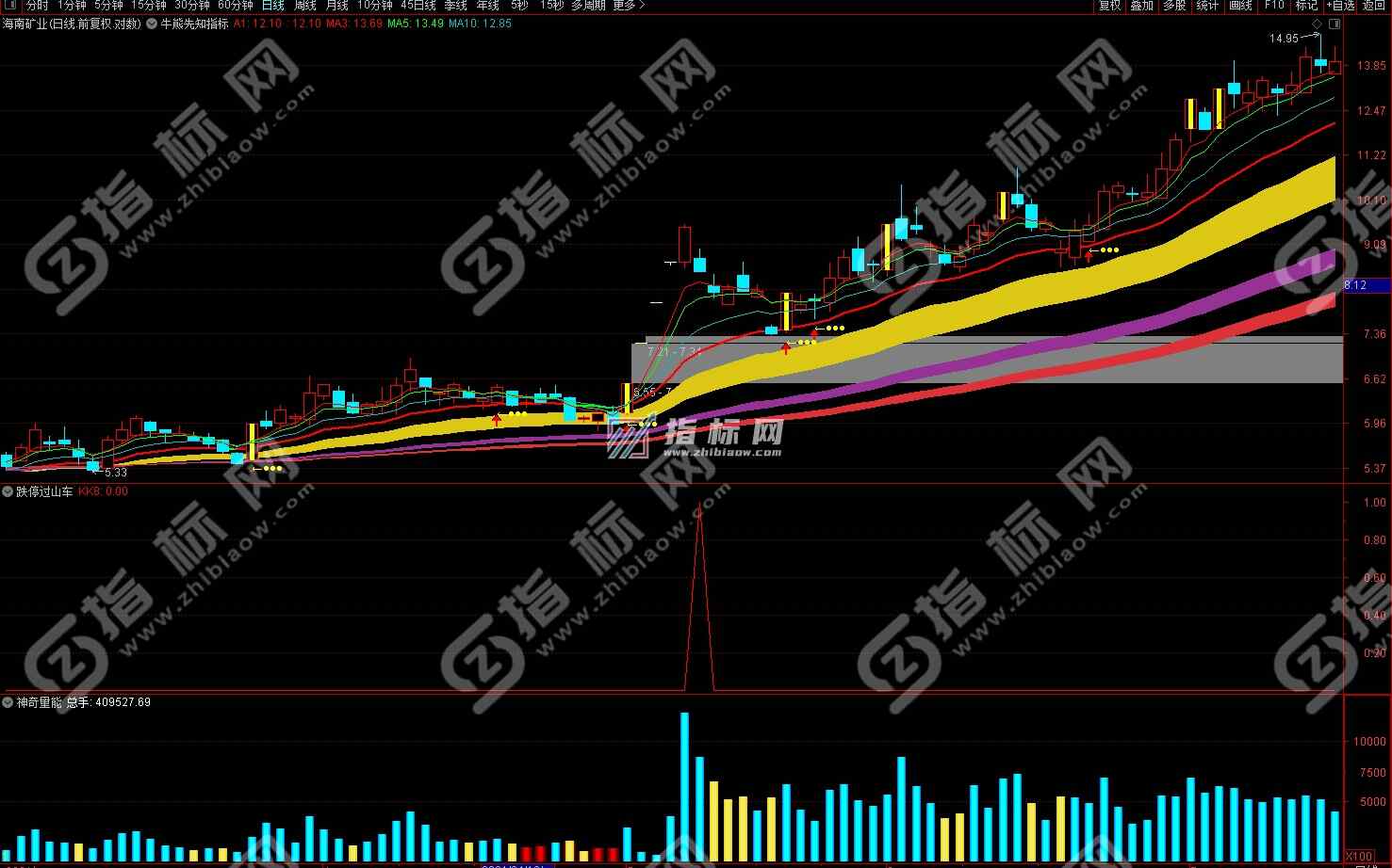 以下是通达信跌停过山车副图+选股指标公式截图和用法说明,跌停过山车指标是专对上升趋势中庄家利用跌停出货而进行的洗盘超级手法,在跌停随后便强势反弹或拉升,实盘中结合VOL成交量或神奇量能指标公式把握短线机会。