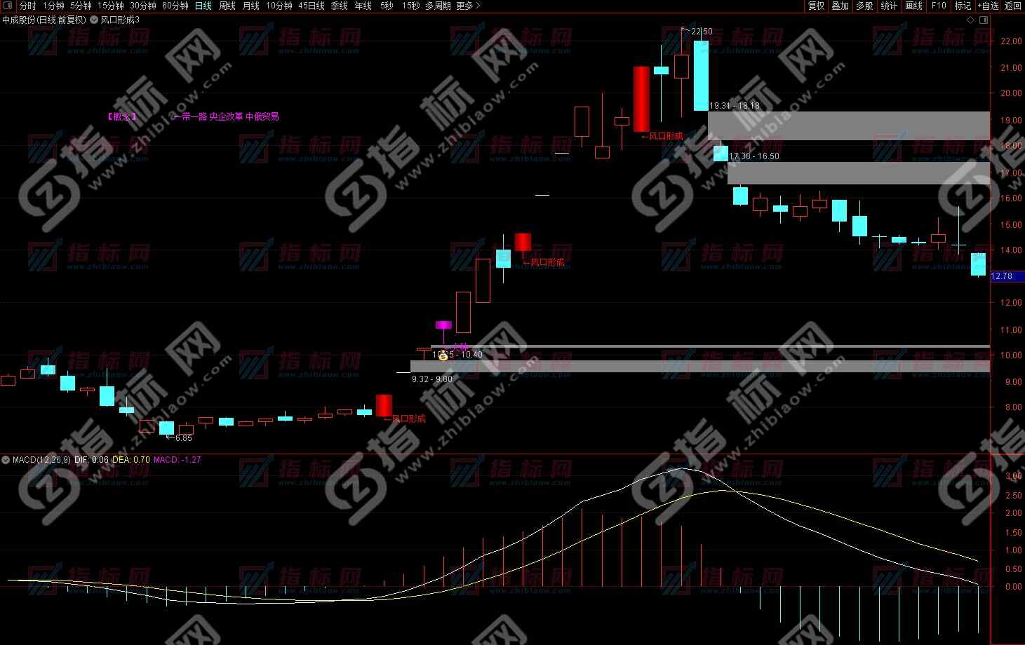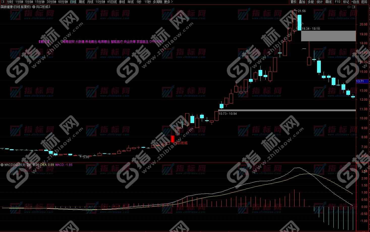 风口形成主图指标公式如下: