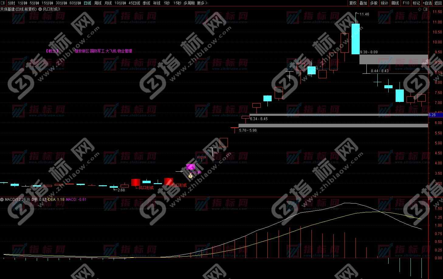 根据上述公式可以得出风口形成主图指标。