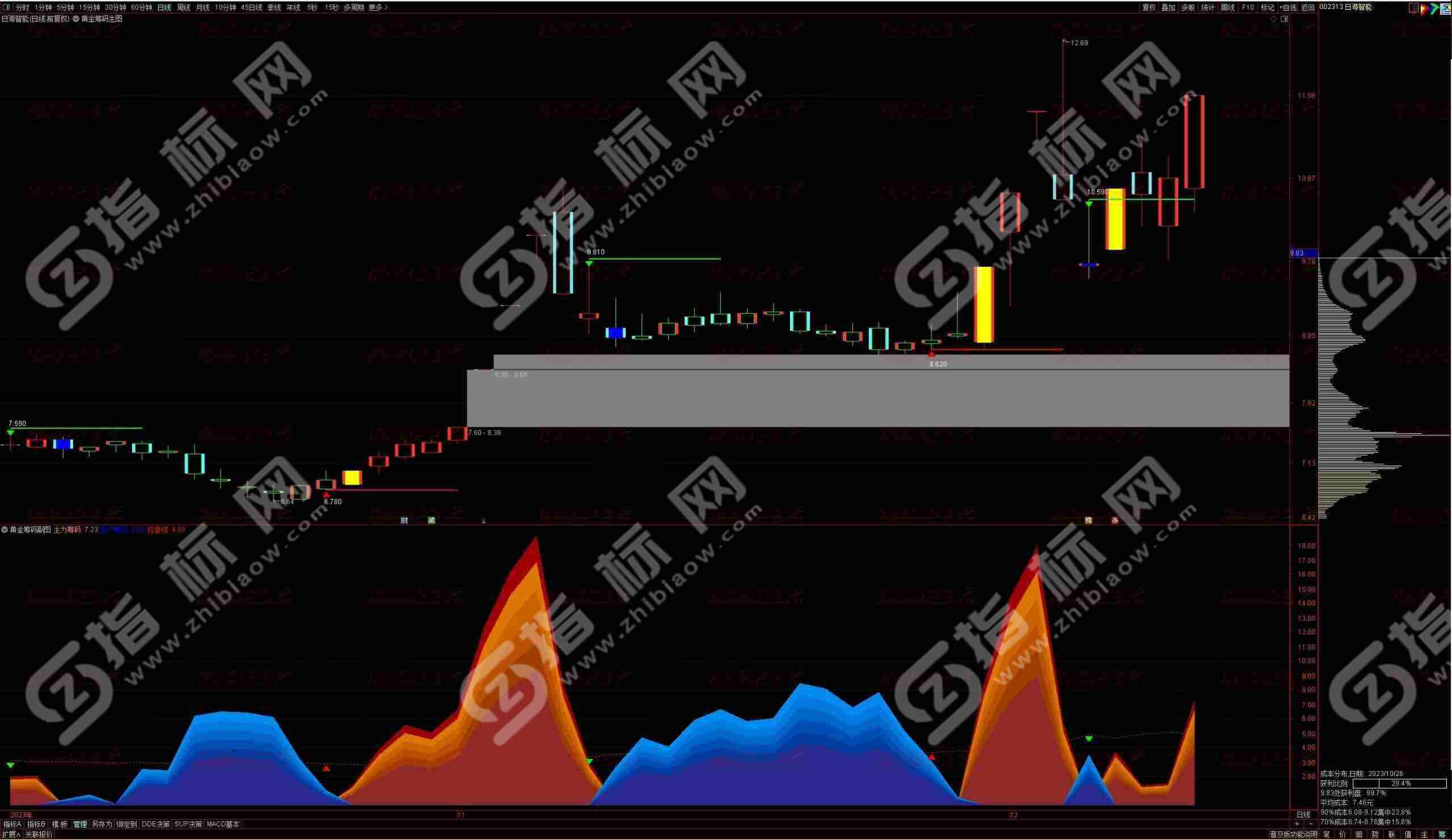 在实际应用中,该指标公式可以与其他技术指标结合使用,形成更加全面、准确的分析体系。例如,可以将通达信黄金筹码峰副图指标公式与K线图、MACD等指标相结合,形成一套完整的交易策略,从而实现更加稳健、有效的投资。