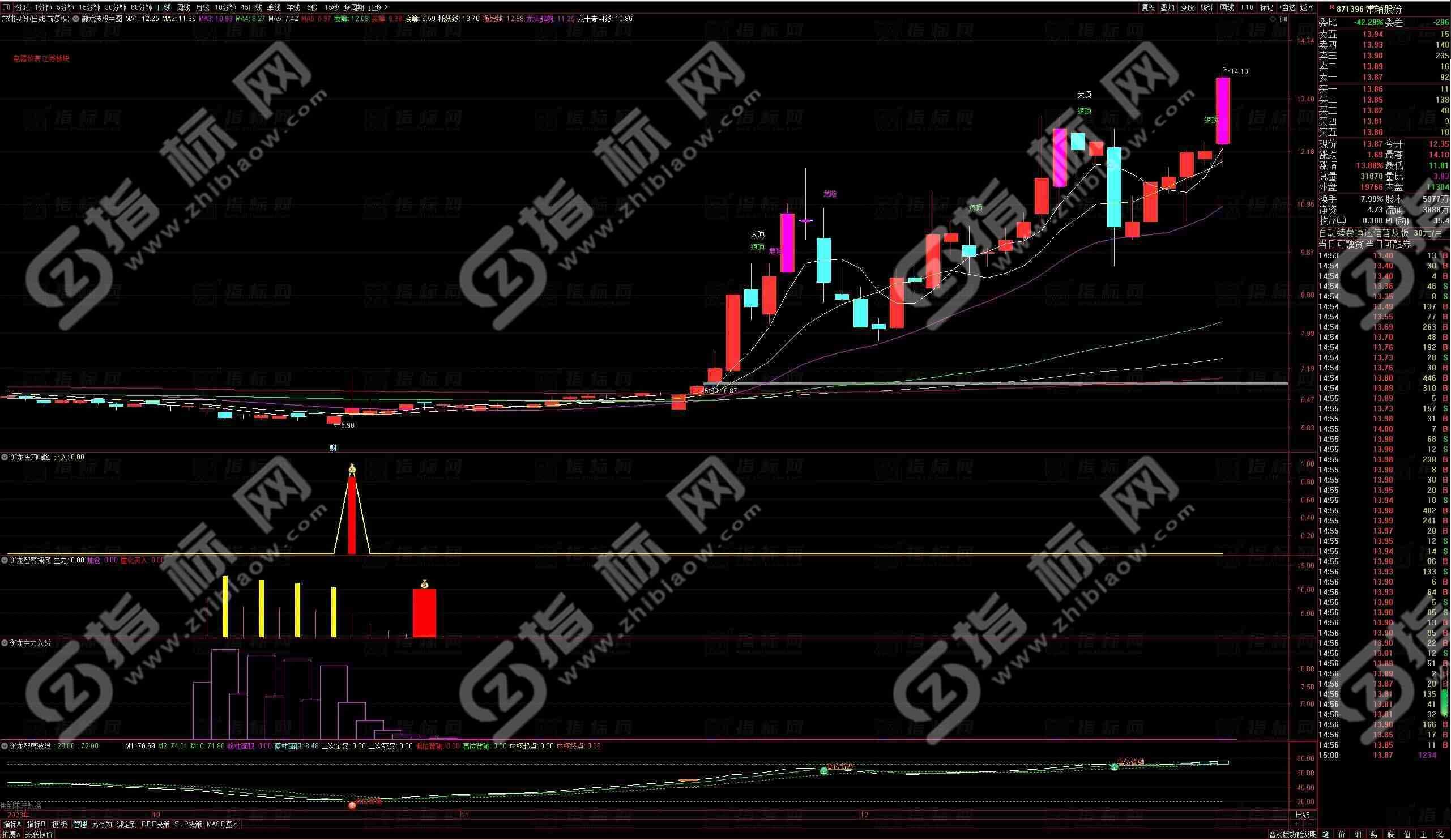 通达信御龙智尊擒底全套13个指标公式,每一个都有其独特的意义和应用场景。它们有的用于判断市场趋势,有的用于分析资金流向,还有的是为了寻找买卖的最佳时机。这些指标相互配合,形成了一套完整的投资策略。