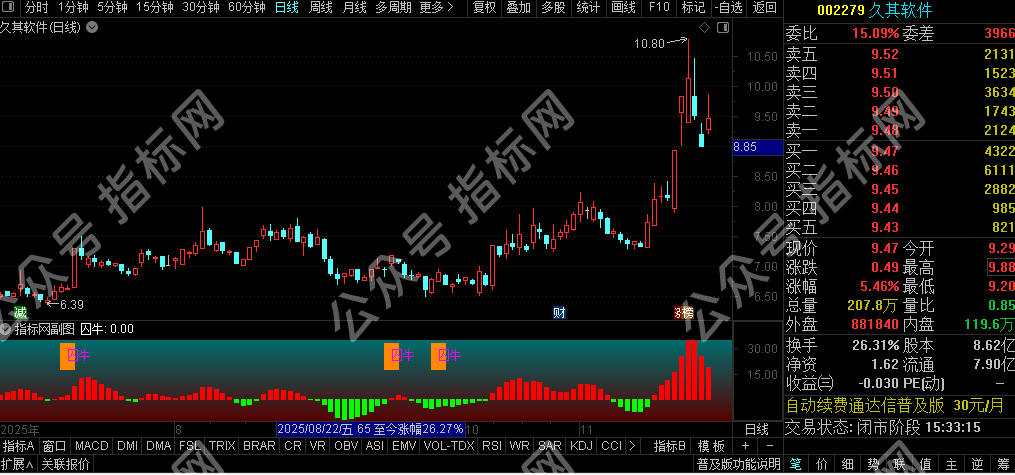 本站所有文章文字内容如无特殊说明均为原创编写,任何个人或组织,在未征得本站同意时,禁止复制、盗用、采集、发布本站内容到任何网站、书籍等各类媒体平台!指标公式源码来源于网络收集和用户上传,分享目的仅供参考与学习,如需商用,请购买正版,否则后果和损失自行承担。指标公式案例截图仅代表过去,依此操作,责任自负。本站不提供技术培训、安装调试、股票推荐等金融服务。
